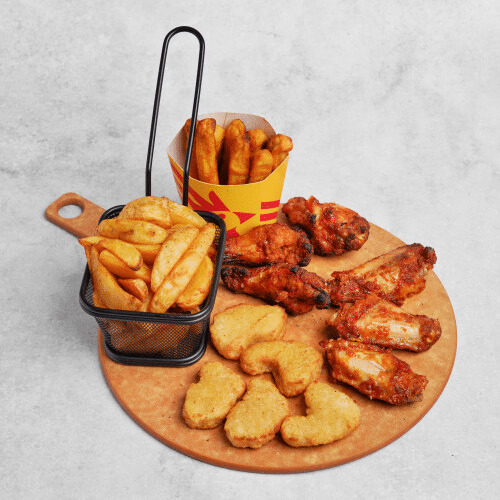 6 chicken wings + 6 chicken nuggets + portie American potatoes.